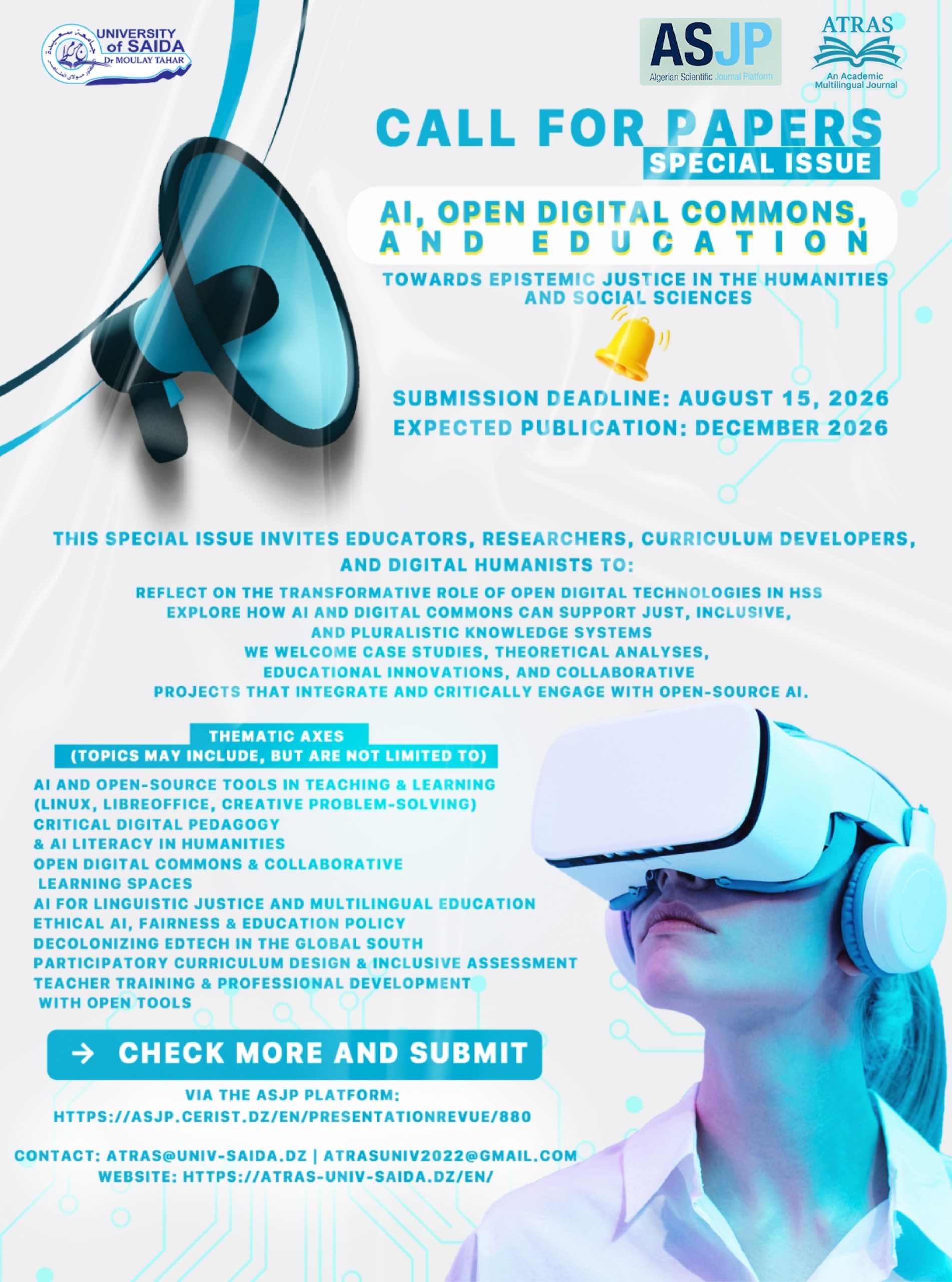 ATRAS is a double-blind, peer-reviewed, and multidisciplinary journal issued by the Faculty of Letters, Languages, and Arts, Saida University